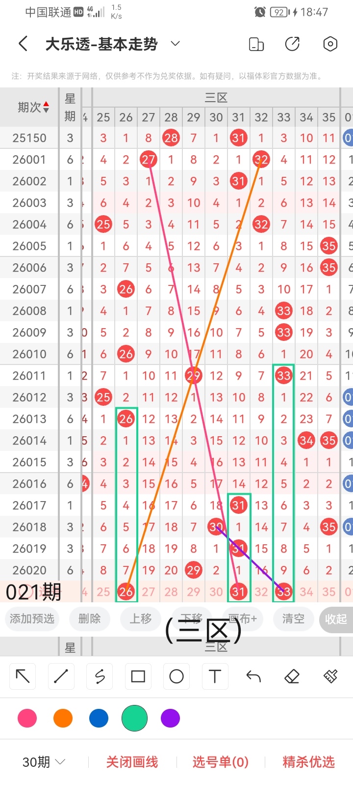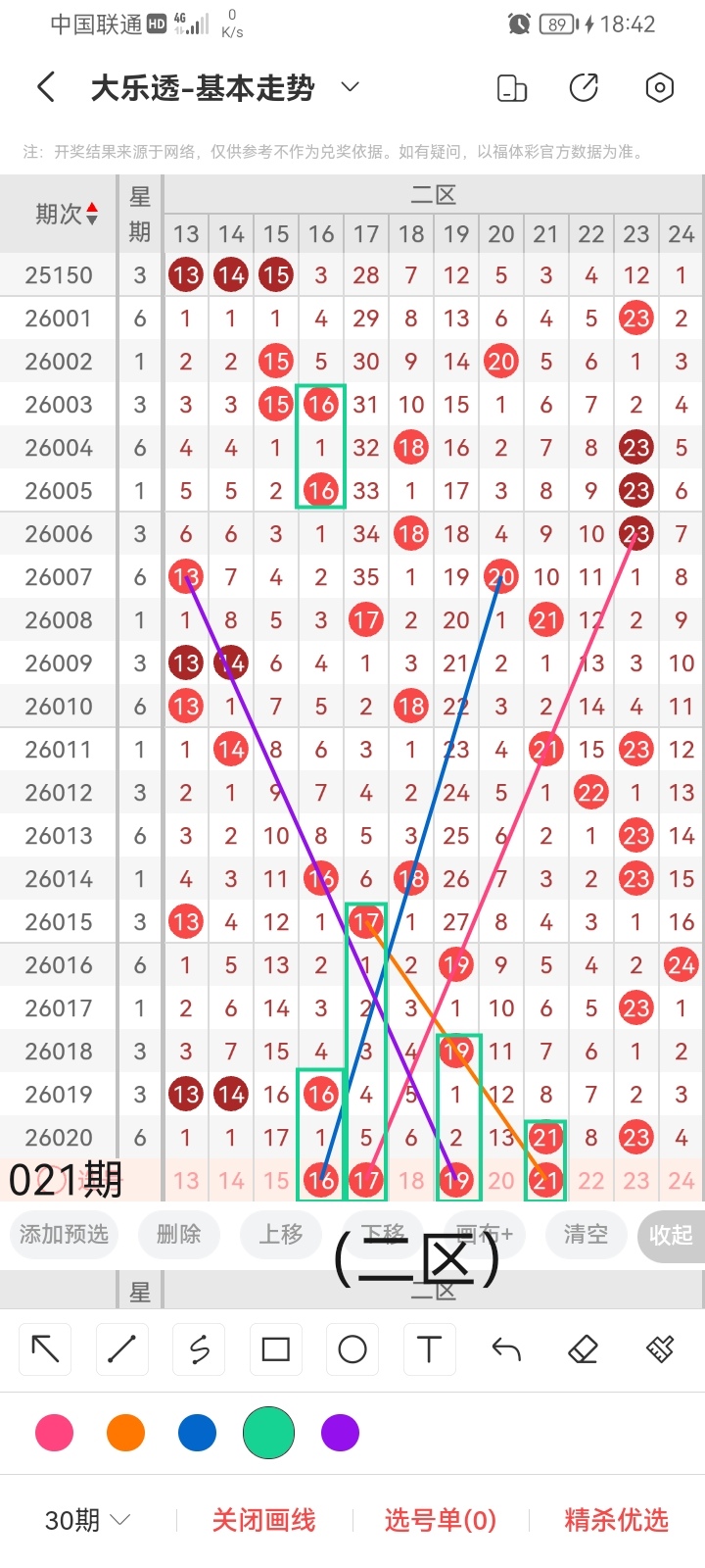 通过以上对上期的简单回顾,下面进入大乐透第2026021期(下面简称本期)的选号分析: