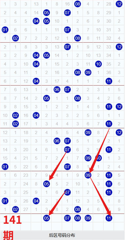 近3期三个指标来看后区总体推荐五枚号码供参考:05 07 08 09 11!