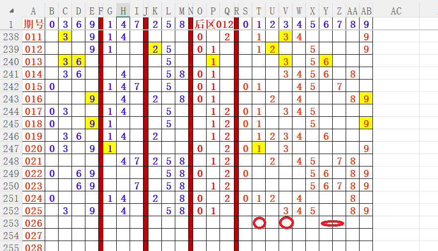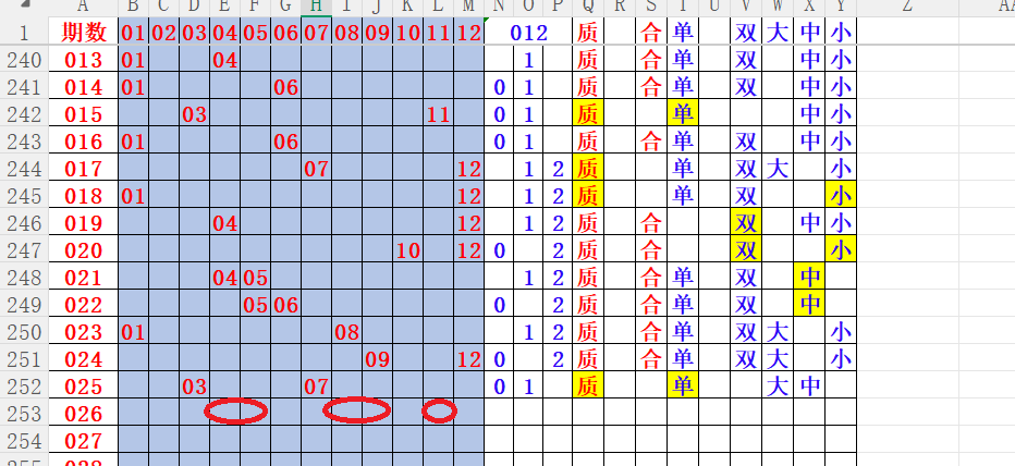 如上图4,012路分析012路,本期重点12路。重点 04 05 08 09 11