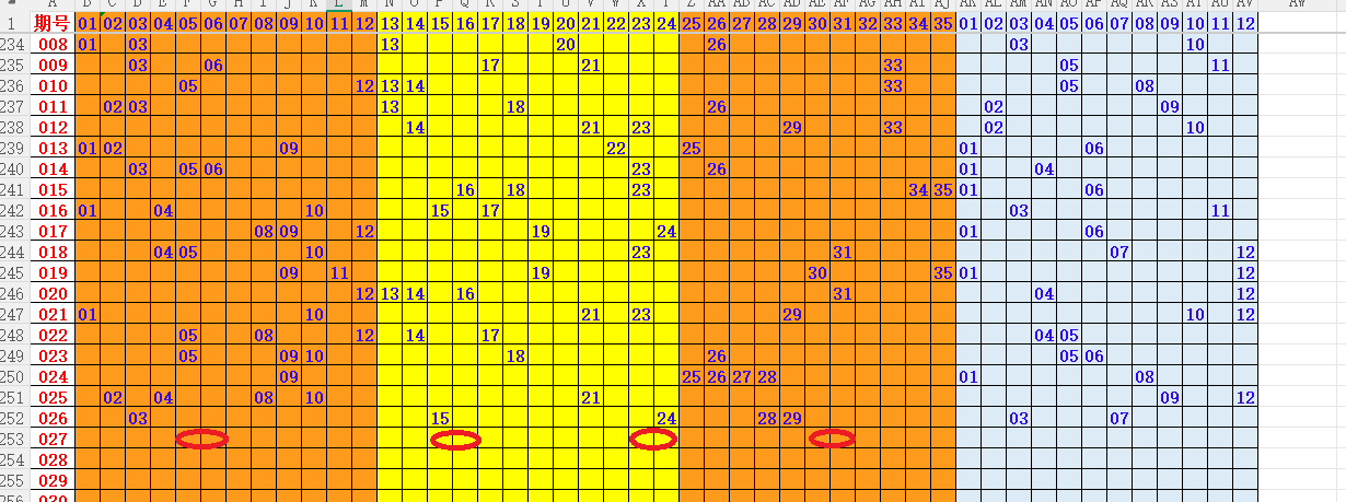 第三区最低出2个号,重点号码: 23 24 30 31