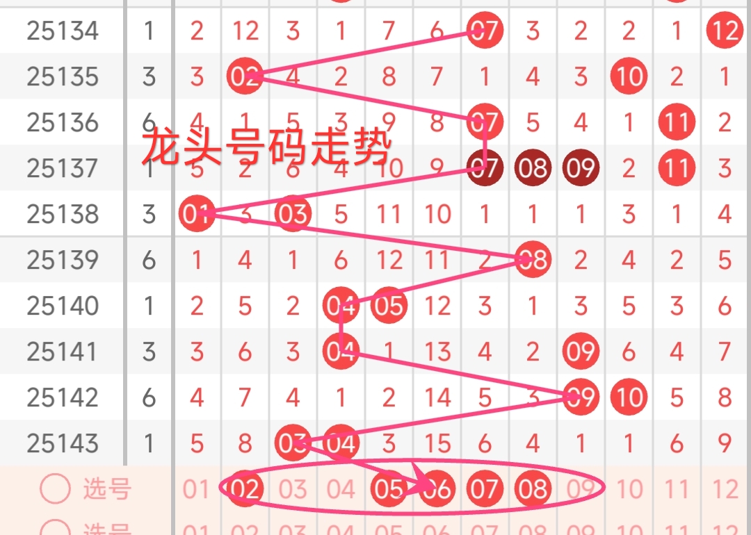 上期龙头号码为03,振幅下降了6点,开出奇数号码。从近期龙头号码的走势来看,近期龙头号码波动频繁。上期龙头为03,近期龙头号码多在01 - 09之间出现。从走势来看,小号码占据主导地位。本期龙头号码可能依然会出现在小号码区域。预计本期龙头号码可能会在01 - 12之间开出。本期还需注意连续多期漏出的号码,需重点关注,有回补龙头号码的趋势。 综合考虑,本期龙头号码推荐关注:02、05、06、07、08。