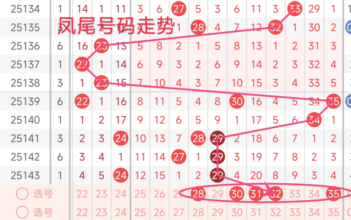 上期凤尾号码为29,开出三连重号,振幅为零点,开出奇数号码。从近期凤尾号码的走势来看,近期凤尾号码波动较大。上期凤尾为29,近期凤尾号码主要集中在22 - 35之间。从走势上看,大号码较为活跃。本期凤尾号码有望继续在大号码区间产生,重点关注28-35区间开出。本期还需注意连续多期漏出的号码,需重点关注,有回补凤尾号码的趋势 。综合考虑,本期凤尾号码可以重点关注28、30、31、32、35。