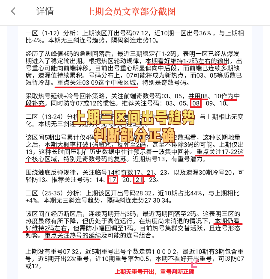 会员文章每个区间给出更详细的分析,说明整体走势的最新趋势,重号和连号均有推荐。