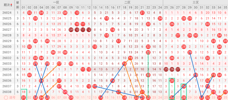 接下来,我们根据近期的开奖情况,对大乐透26039期的开奖号码进行分析: