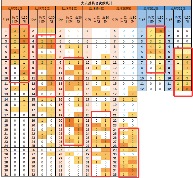 统计历史同期、近30期奖号频率,热门摸底,灵感来源