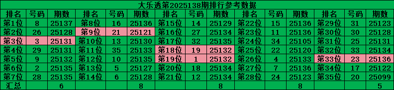 近期开出最多的位置是第32位,对应本期号码是:25号
