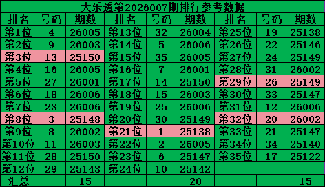 综上所诉超级大乐透第2026008期推荐号码: