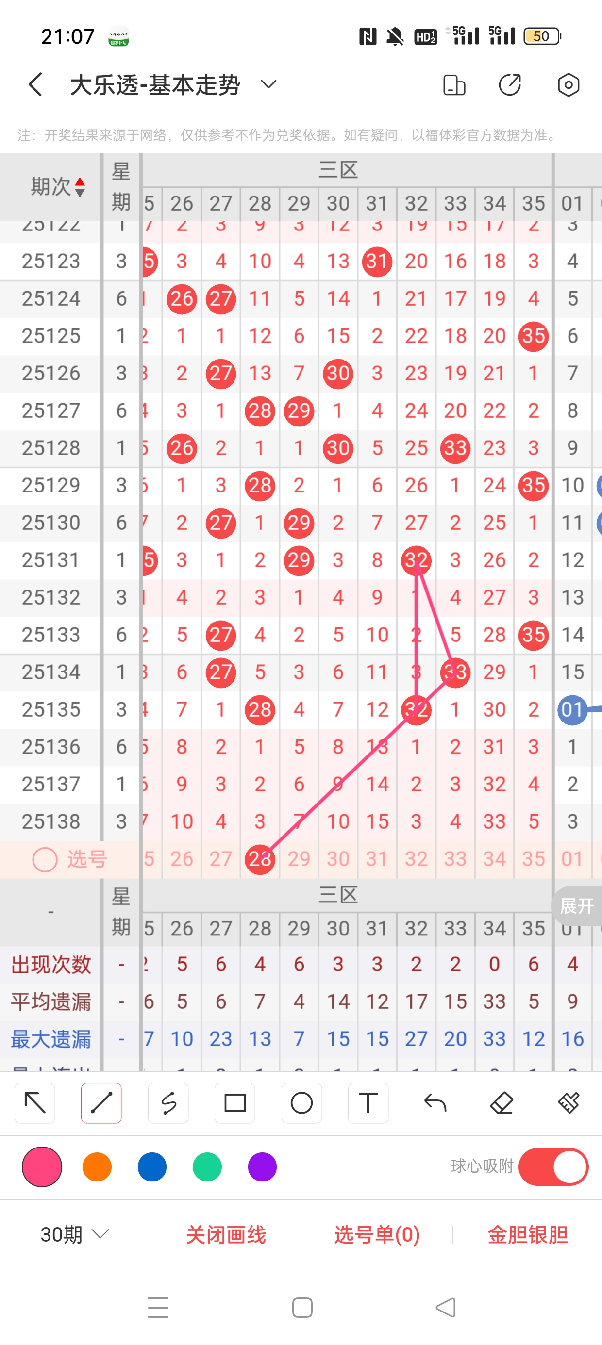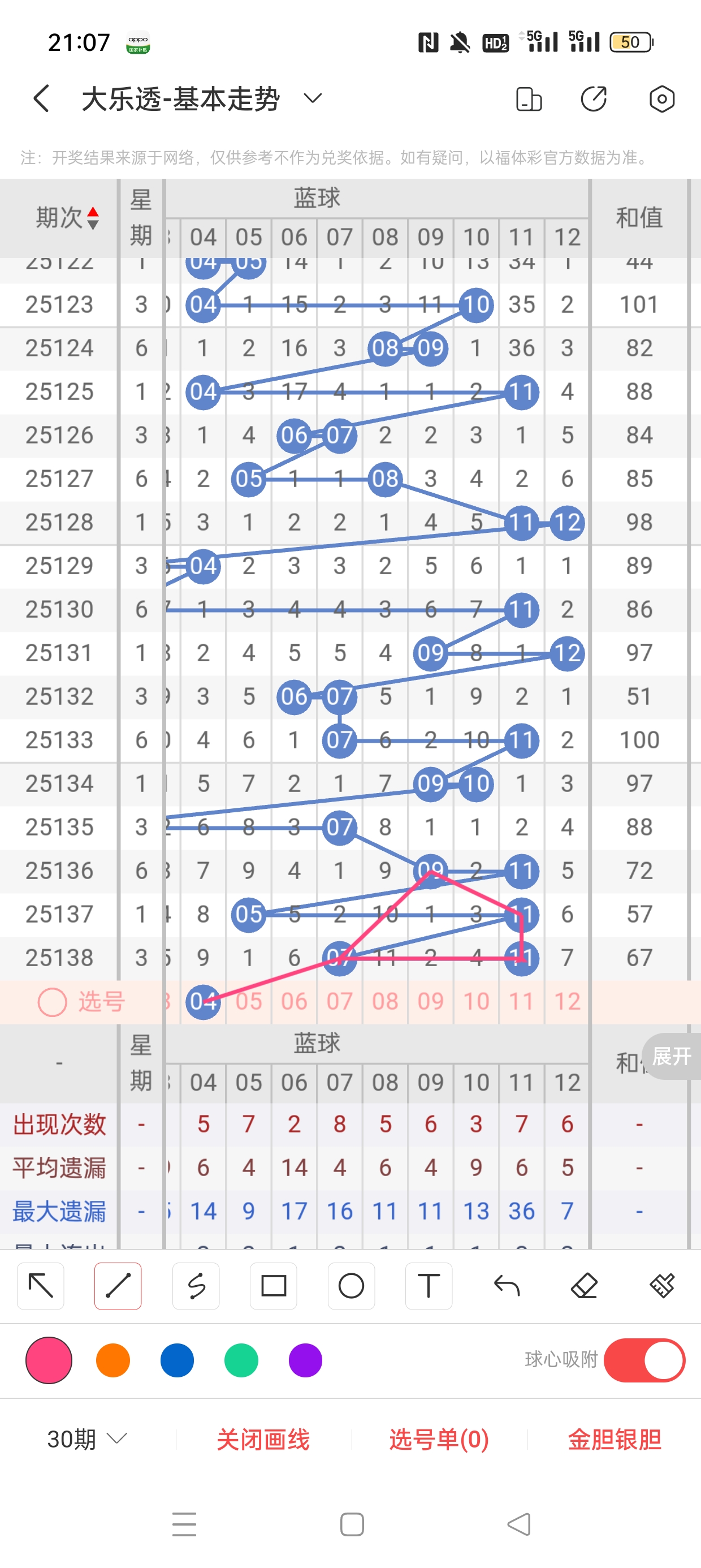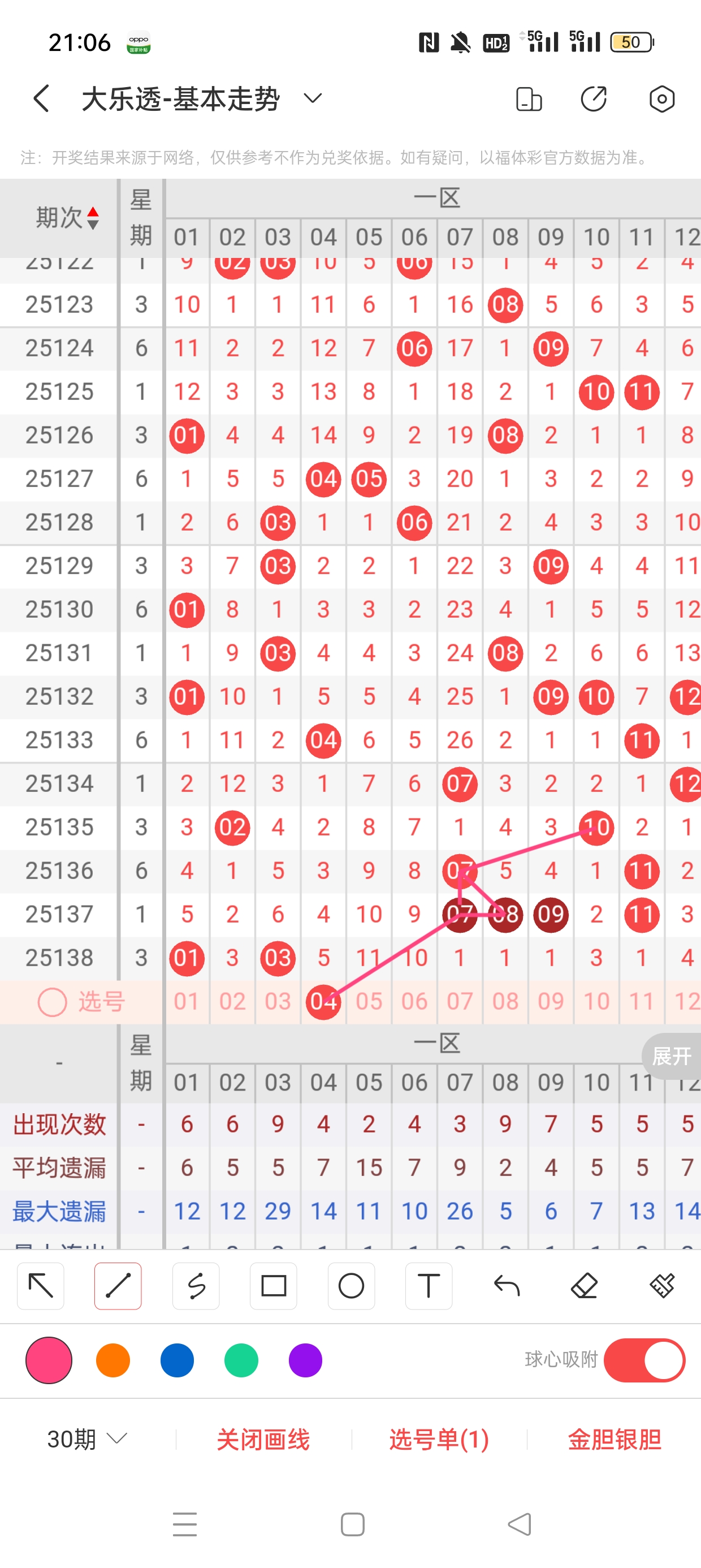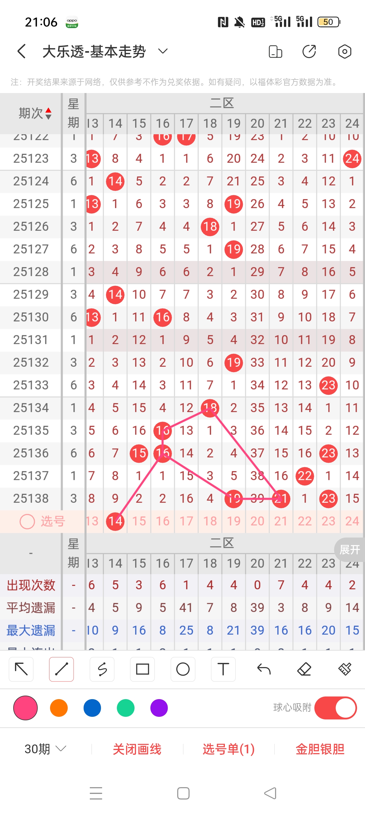 25138期开奖结果:1、3、19、21、23+7、11,奇偶比5:0,大小比2:3,和值67,012路221,邻孤传0邻5孤0传,同尾号3、23,无传号,无连号,断三区。总结完毕,下面开始本期分析。