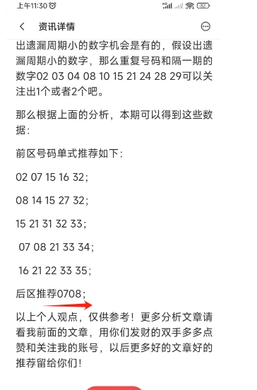 上面两张图是上期的体彩大乐透分析文章截图,最后后区推荐是9组中猜对了0108,然后最后定的两码是0708,本期如何呢?接下来分析一下体彩大乐透后区的思路和前区的思路。