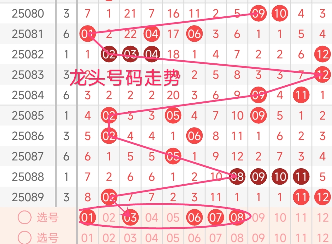 龙头号码走势分析:
