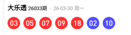 26033期:03+05+07+09+18=42
