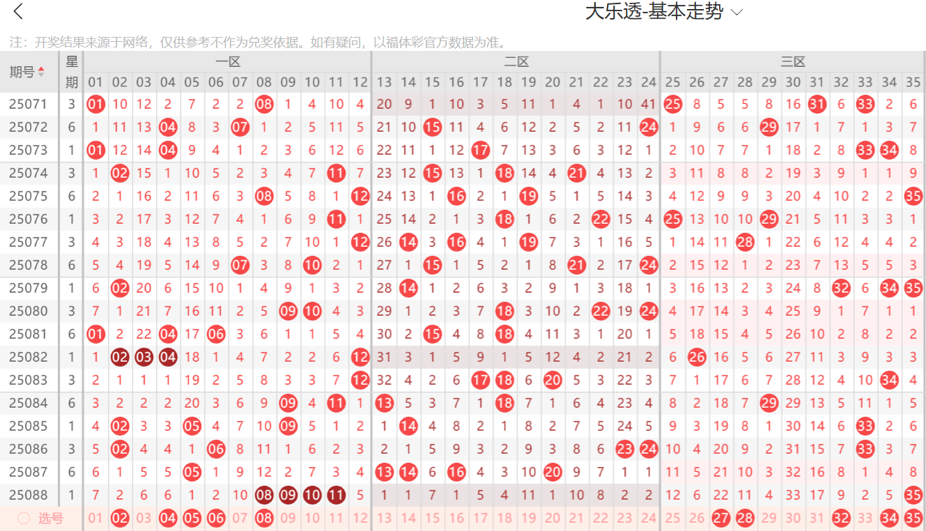 龙头凤尾:上期的龙头凤尾再次开出二路号,可见龙头凤尾二路号非常之热,本期倾向龙头凤尾至少还得有一个二路,所以喜欢二路号的直接用,极端情况继续龙头凤尾二路号,大趋势就是龙头凤尾同路号,上期直播间给大家说了8.9连号出号需求强烈,也算是给大家条件重要提示了,并且回答了朋友们0尾10是可以的,然后杀四码错杀的11给大家找对,只可惜没看四连,所以整体4+1,极限杀号与87期一样,还是错杀一码,上期错杀的是35,大家老粉丝应该都知道,大乐透的35容易错杀,所以今后遇到喜欢的可以防,本期的龙头如果继续看二路,考虑2.5.8,优先考虑偶数,凤尾同样考虑二路,其次考虑一路号,防守0路。