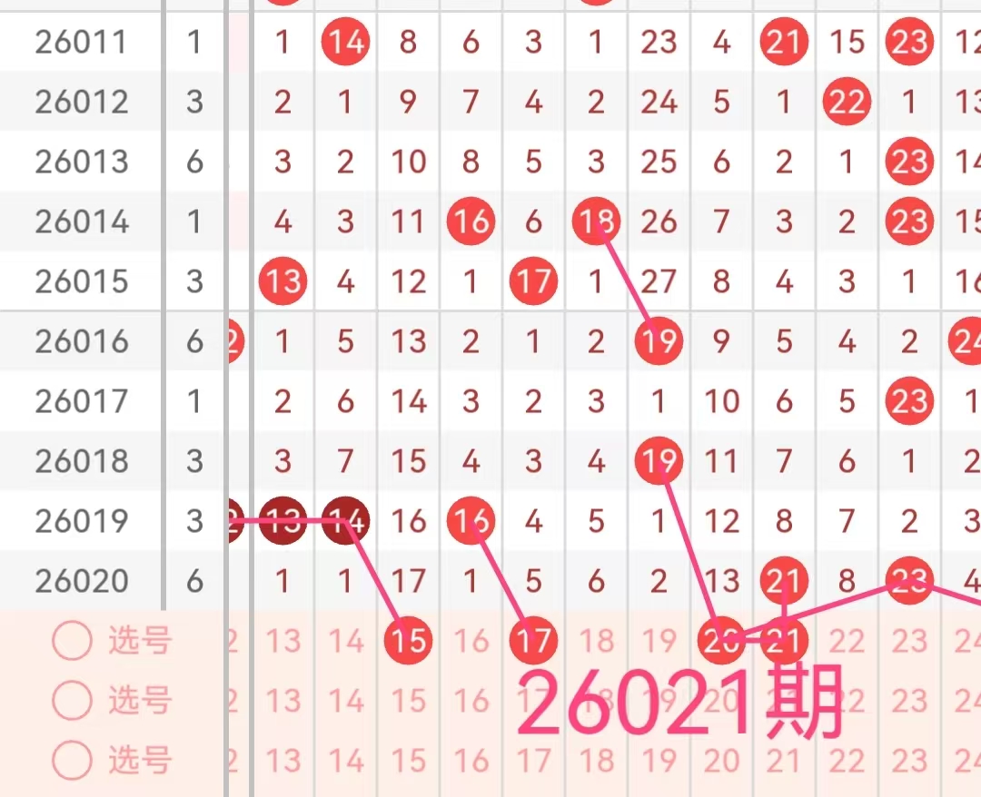 2. 二区(13-24):上期该区间开出两个号码21和23,号码21在遗漏8期后再次开出,号码23遗漏2期后开出。根据历史开奖来看,近期该区间活跃度较高,本期预计会有1-2个号码会继续开出。特别是那些遗漏次数较大的号码15、20和该区间内近期表现较好的号码17、21这个号码在走势上表现出一定的稳定性,且与前几期出号形成呼应,有望出现在本期开奖中。