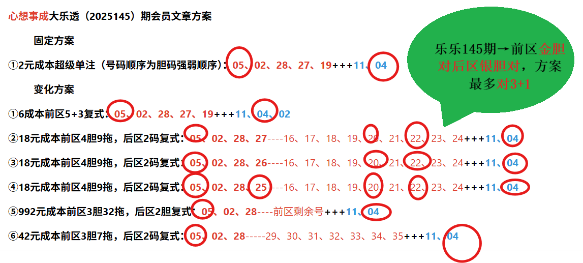 心想事成大乐透(2025146)期会员文章方案