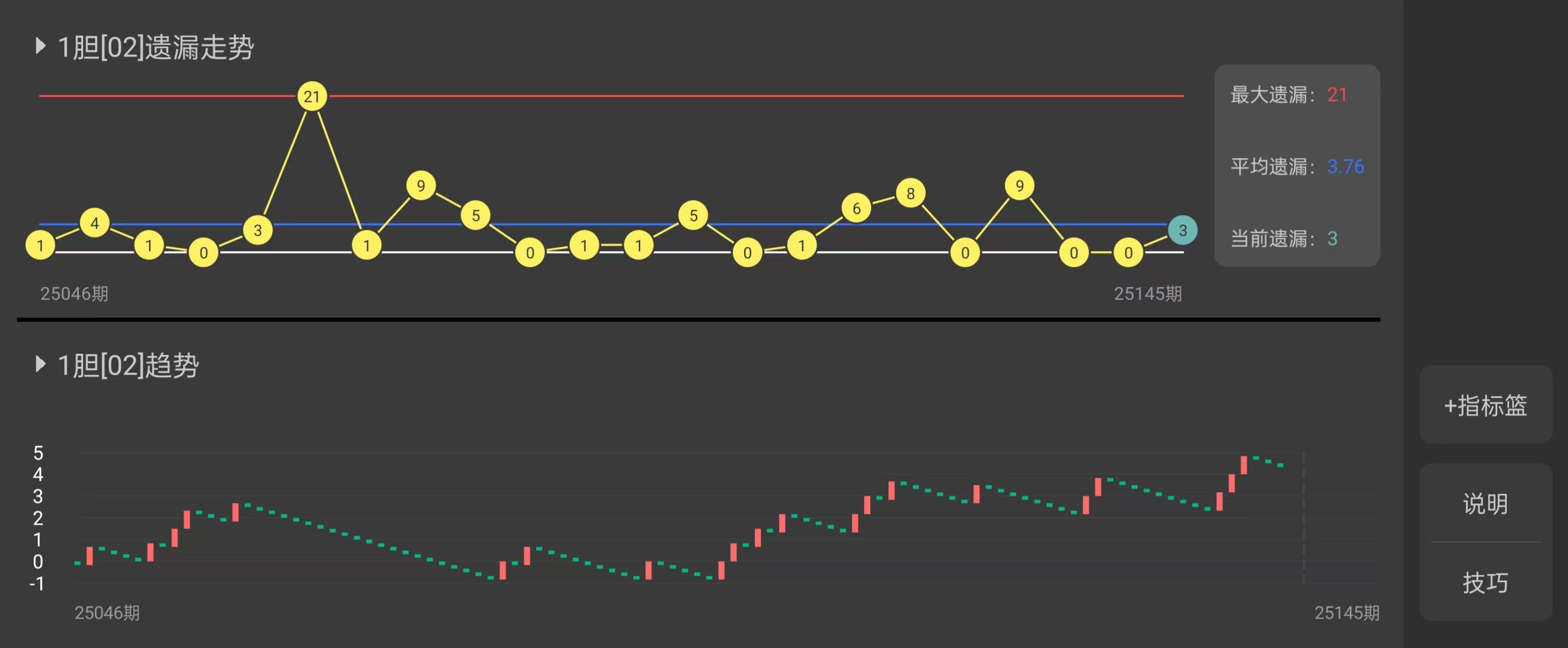 后区号码的平均数和中位数均显示,近期后区奖号多集中在中间段(6-9),且奇偶比例趋于平衡。这说明后区在选择上更倾向于“中段温和号码”,而非边缘或极端组合。