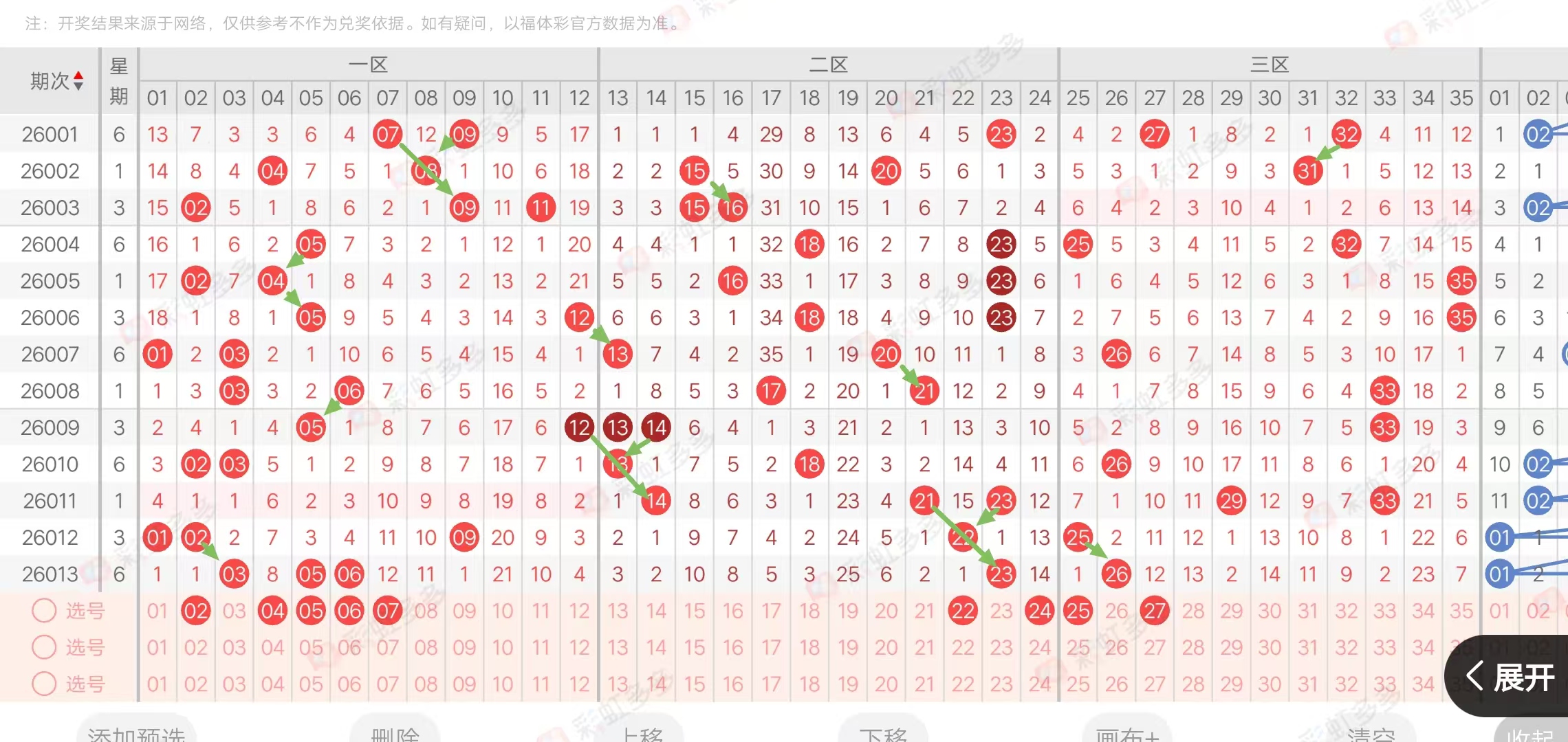 各位自己参考前面的条件,增加一些条件过滤就可以了,不想过滤的也可以根据三区,大小,合理搭配,还可以在重码,隔期码,邻码,参考一下。