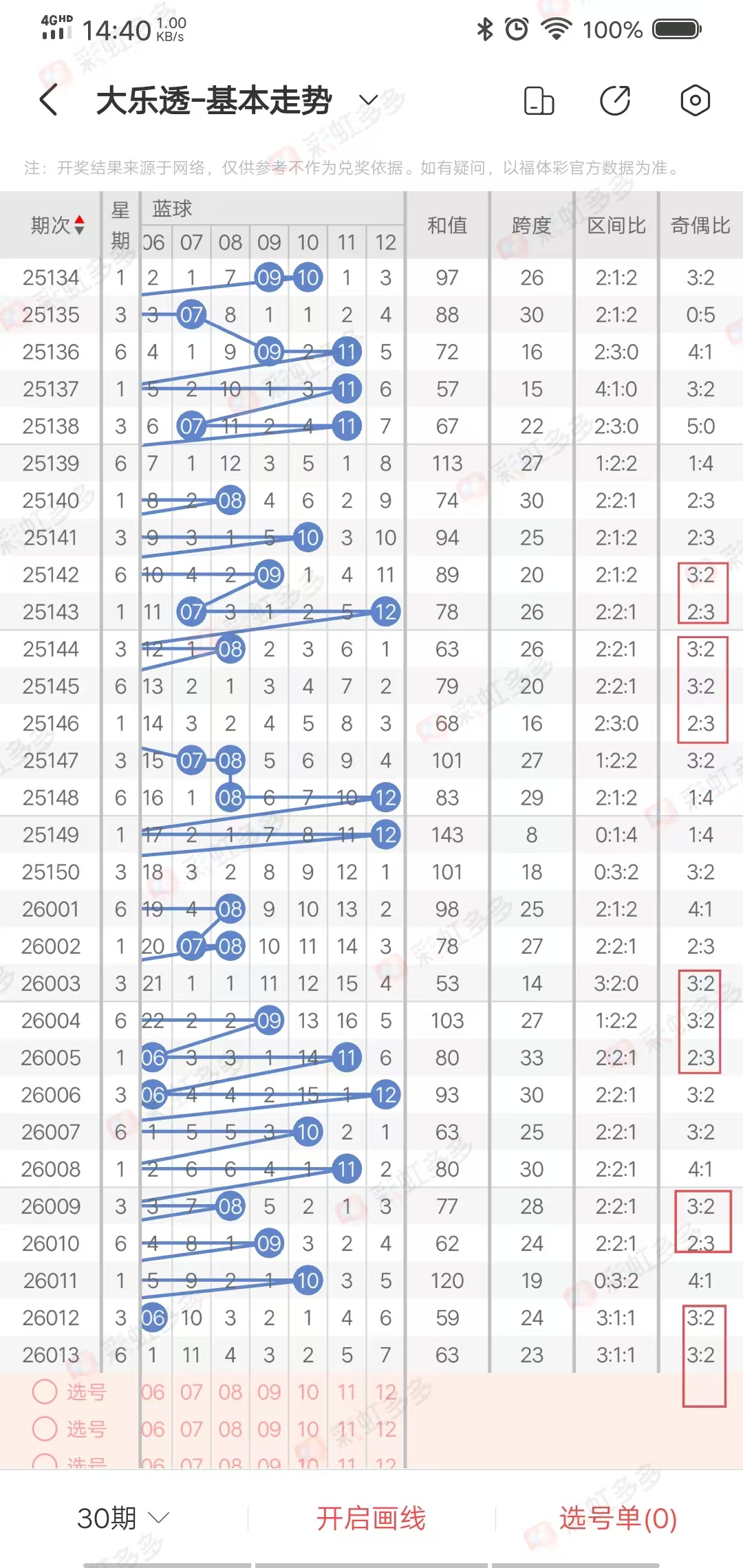 ✔本期大乐透奇偶比分析