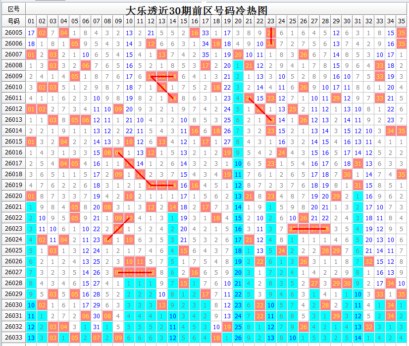 对前区大势的把握,少不了号码区间分布的情况。