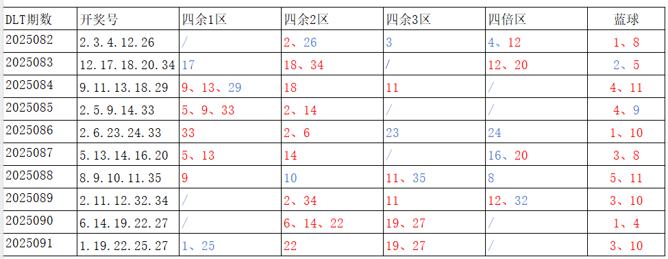 首先看上期回顾,大乐透 2025091期开奖号码:1.19.22.25.27+3.10。前区红球开出:4余1区号码2个,4余2区号码1个,4余3区号码2个,4倍数区号码0个。后区蓝球:热号组合重开。再看个人数据分析:推荐胆尾中出3尾3码!龙头号码中!恭喜中出的虹友!
