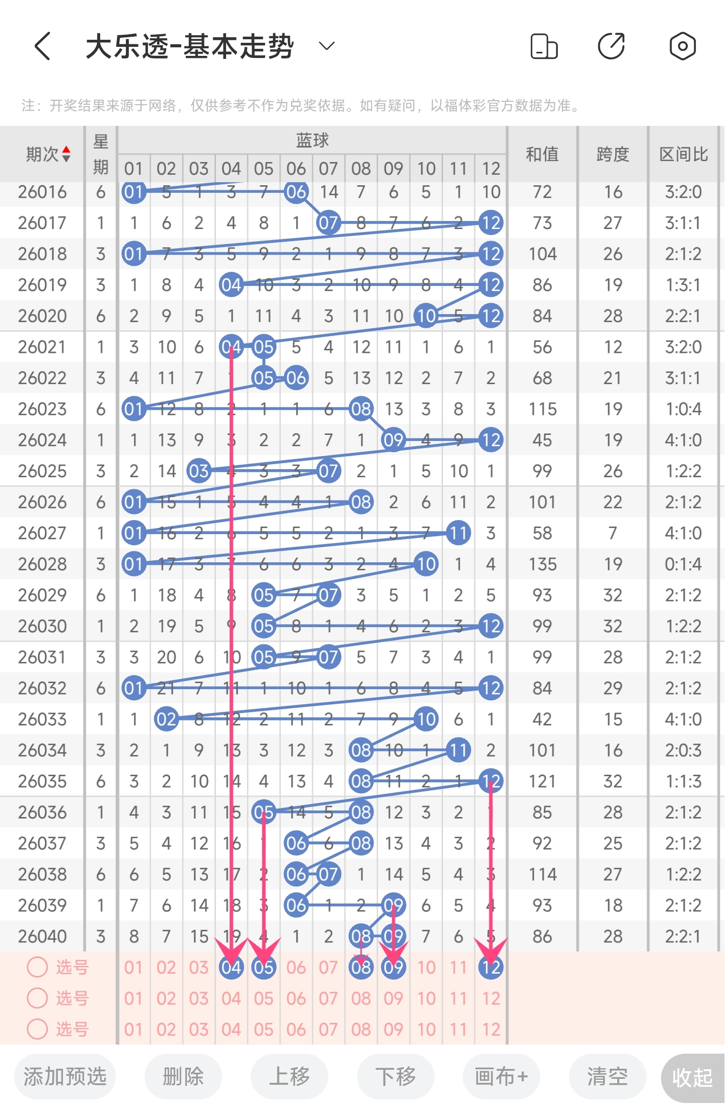 第26027期大乐透文章推荐命中4+0,红球3胆码中10,龙头命中9。