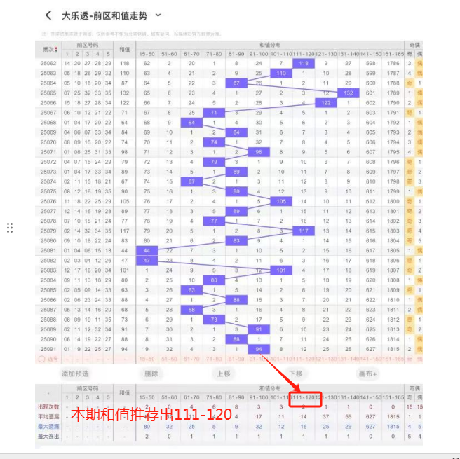 5、和值:上期和值为:94。近91期和值分别为: 104、102、63、97、88、49、73、122、131、62、82、74、116、61、105、116、54、85、103、110、107、73、107、65、67、73、118、81、101、70、52、59、53、88、104、78、112、114、54、102、134、81、106、95、58、89、77、63、87、101、90、83、57、83、114、108、79、76、129、81、102、116、71、76、59、112、80、118、110、87、132、122、71、64、84、74、98、79、89、67、90、105、89、77、117、83、44、47、101、80、63、88、68、73、91、88、94,本期和值范围有所上升,推荐和值为奇数值,本期推荐出现范围在111-120区间。