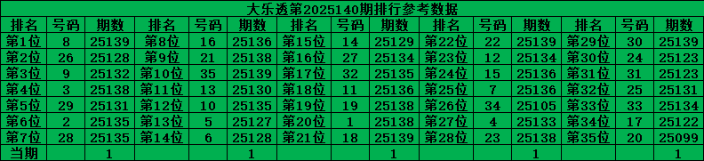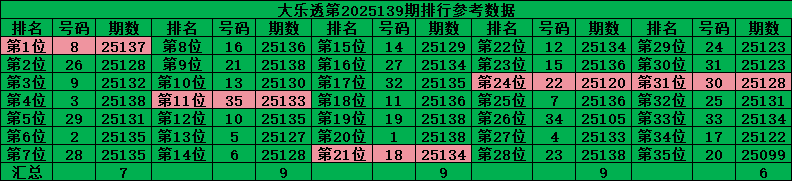 综上所诉超级大乐透第2025140期推荐号码: