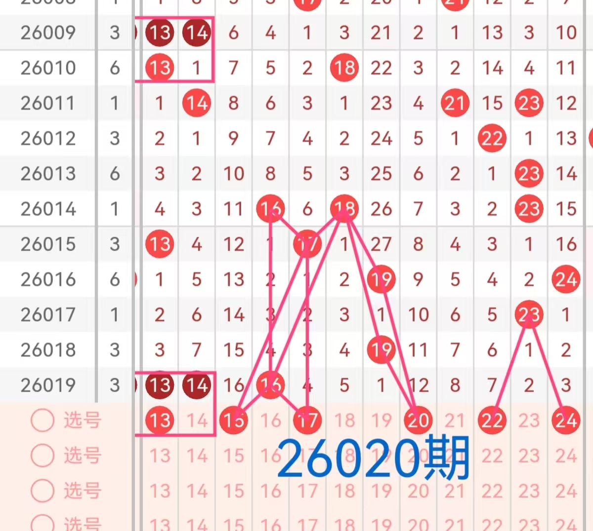2. 二区(13-24):上期该区间开出三个号码13、14、16,号码13在遗漏3期后再次开出,号码14遗漏7期后开出,号码12、13、14这三个号码形成一组三连号的形式。号码16相隔4期后开出。根据历史开奖来看,近期该区间活跃度较高,本期预计会有1-2个号码会继续开出。特别是那些遗漏次数较大的号码15、20、22和该区间内近期表现较好的号码13、17、24这个号码在走势上表现出一定的稳定性,且与前几期出号形成呼应,有望出现在本期开奖中。
