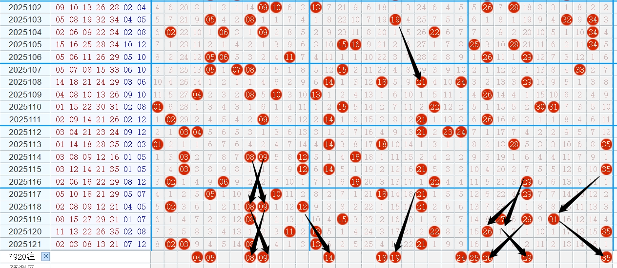 回顾上期25121期开奖02 03 08 13 21 + 07 12,其中一小区01-12出3个,二小区13-24出2个号,三小区25-35出0个!