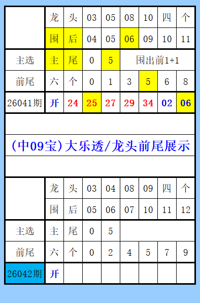 26041 期开奖24、25、27、29、34+02、06,前区呈现全大、四奇一偶的分布,后区开出全偶小数组合。