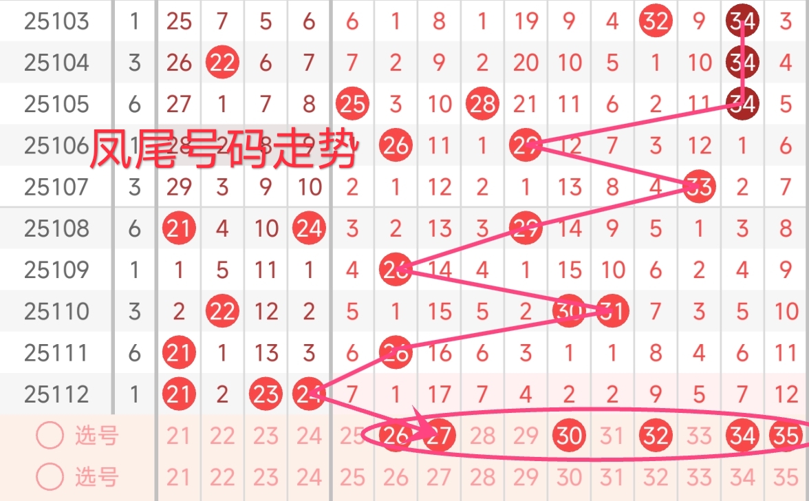 红球三区推荐(25~35):上期红三区开出0枚号码,断区,本期红三区建议出号1-3枚,本期红三区推荐关注号26、27、32、34、35。