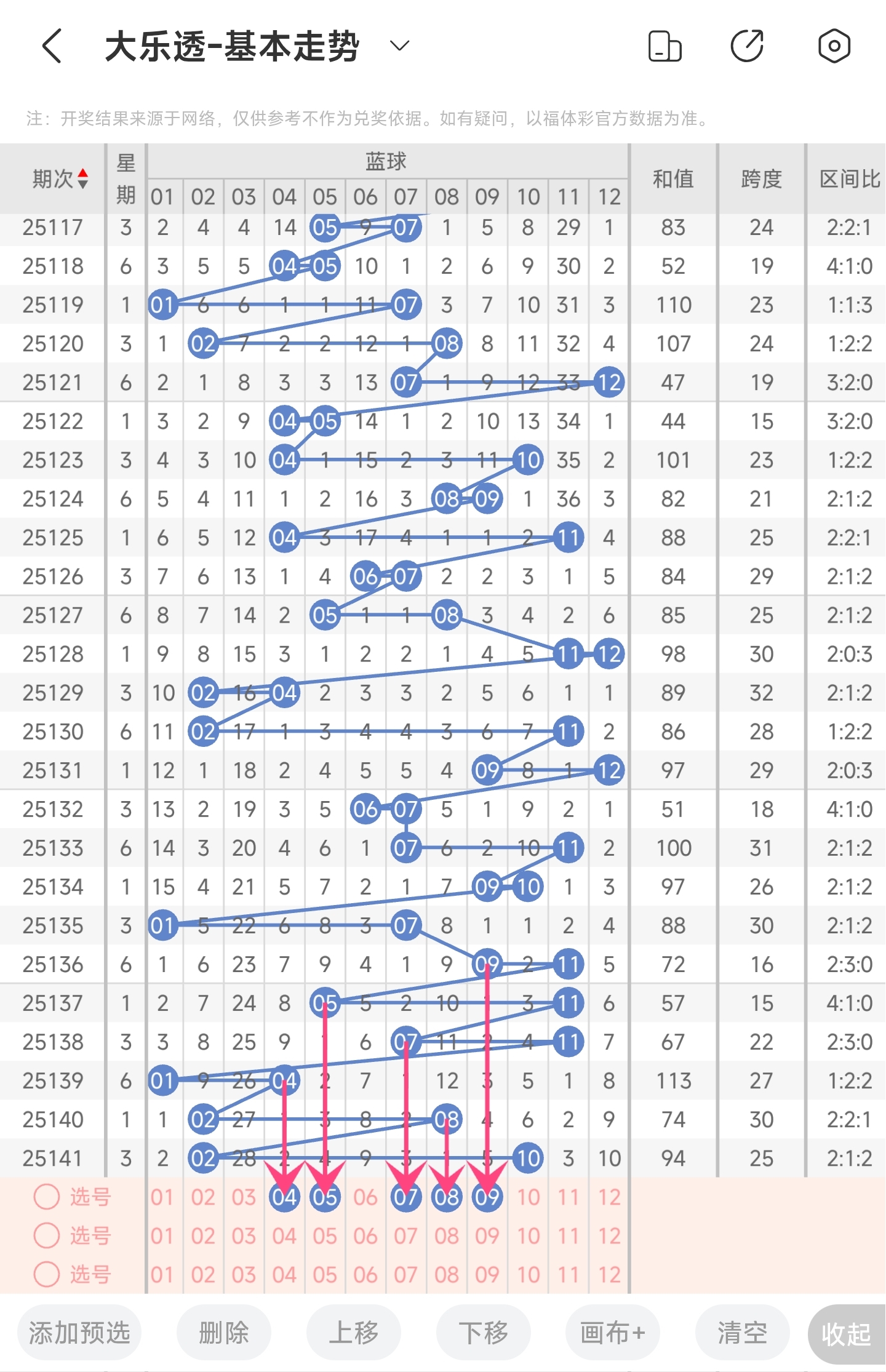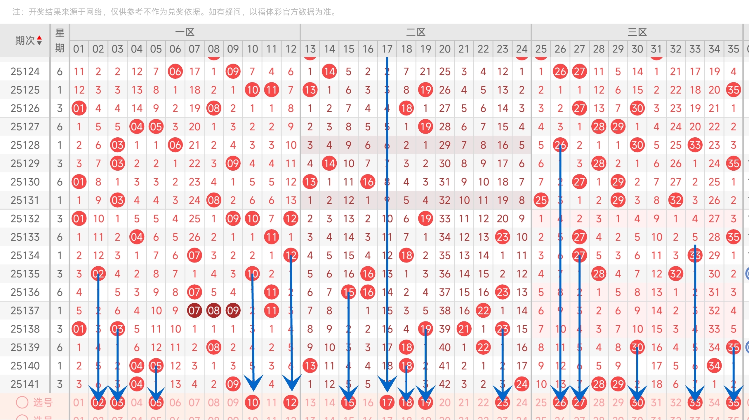 第25138期大乐透文章推荐中命中3,19,23等3个红球,蓝球7。