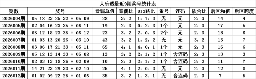 马姐大乐透第013期:后区两码连续正确,本期后区注意全温码组合