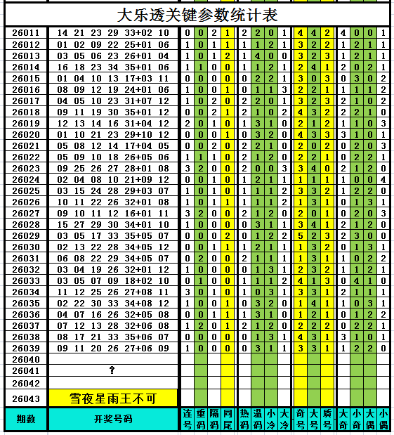 以下是彩虹号签约作者【雪夜星雨王不可】关于大乐透分析的原创文章。