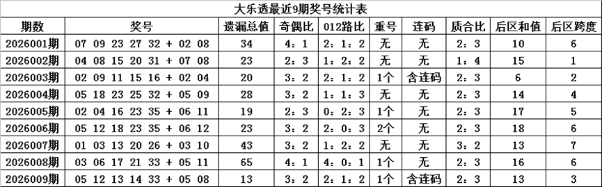 马姐大乐透第010期:上期后区胆码正确,本期后区继续参考一大一小组合