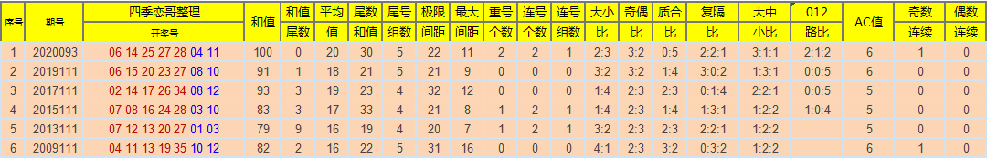 根据历史同期号码(如上图)出号频率分析,以上出现频率较高的号码,要预防1~2号码开出,请结合我上面的分布走势图分析判断。(不要凭空想象,关注彩虹作者【四季恋哥】让你看清虚妄)
