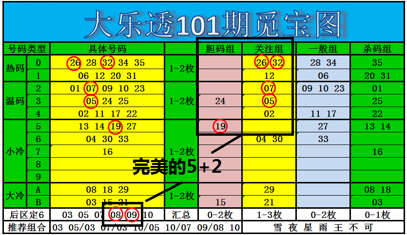 上期觅宝图胆码+关注共13码,完美围中5+2,本期前后区关注什么?(请开个会员看会员专享分析、精选资料及投注方案)。