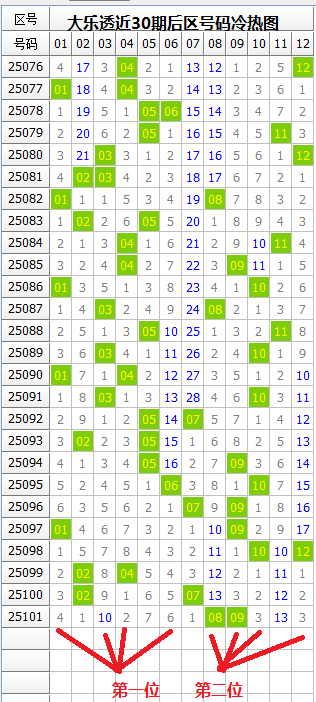 上期热、温、小、大冷2210组合形态。追踪数据请参考前面的大乐透关键参数统计表。