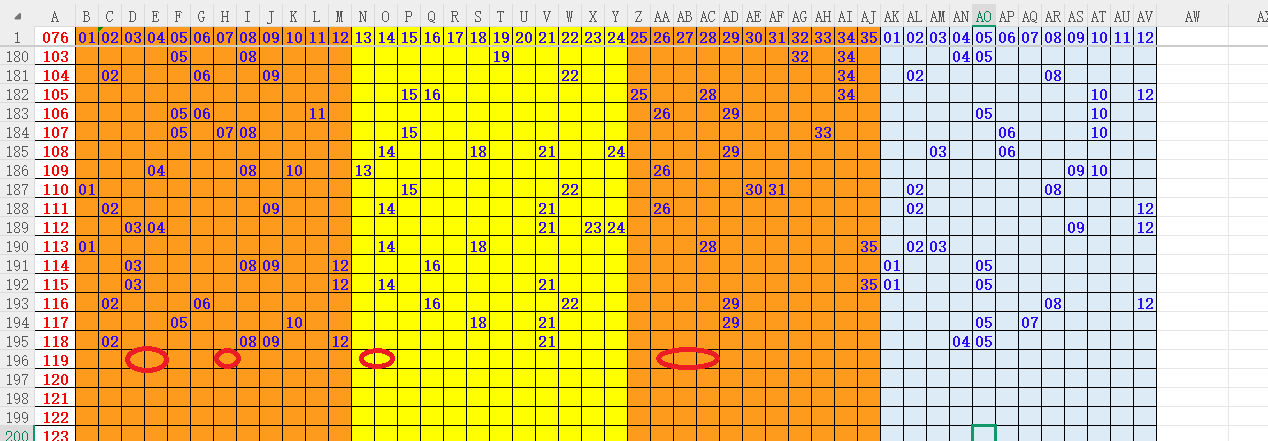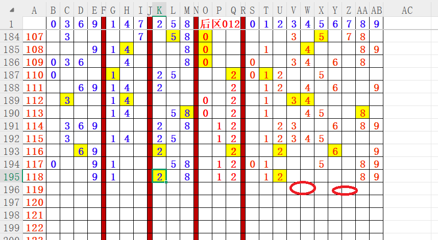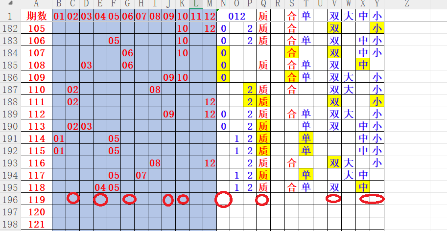 如上图4,012路分析012路,本期重点12路。重点 02 04 06 09 10