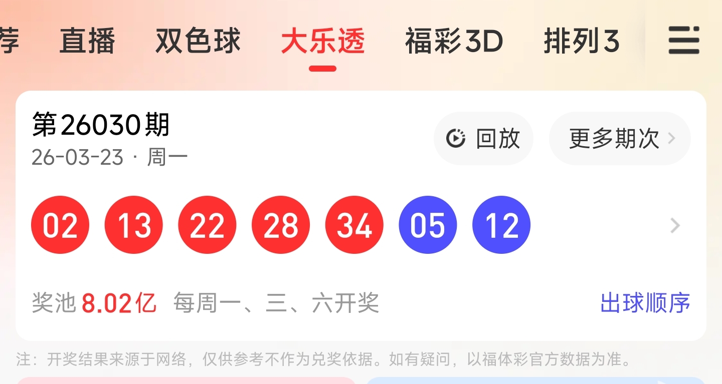 26030期大乐透文章推荐,蓝球2胆中5,龙头命中2,凤尾命中34