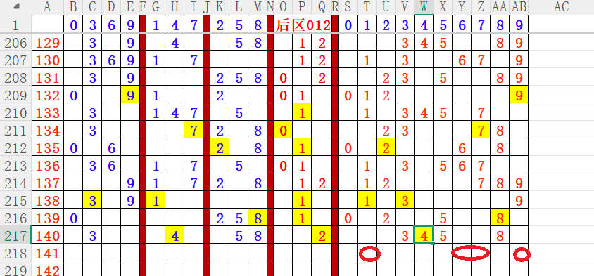 综合以上条件分析:04 05 06 07 09 后区重点。