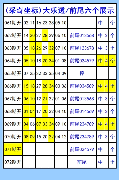 大乐透第071期图文(采奇坐标),前尾六个推荐