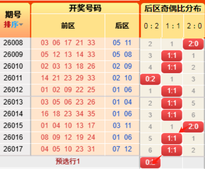上期后区开出小大比为2:0,又命中啦。