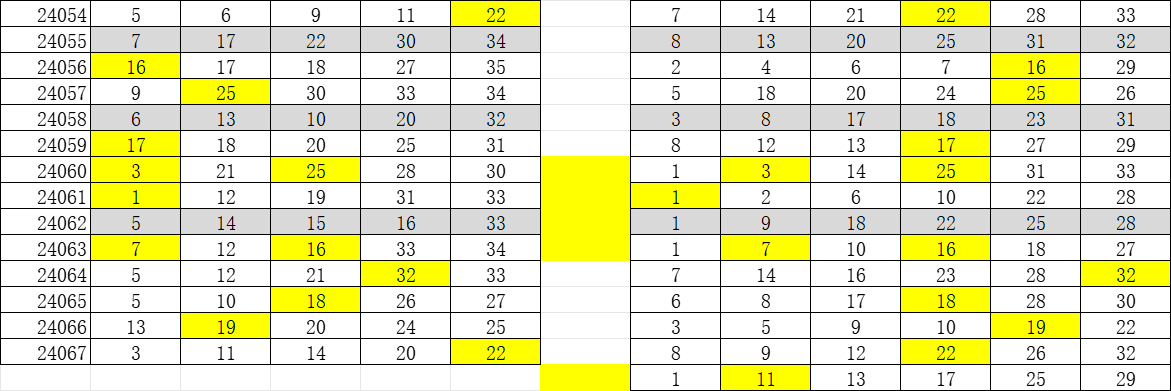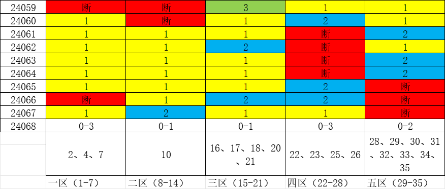 以上各小区号码数量是按照23001期至24066期抓取较为常见出号值,适用于单注及小复式、小拖胆票。