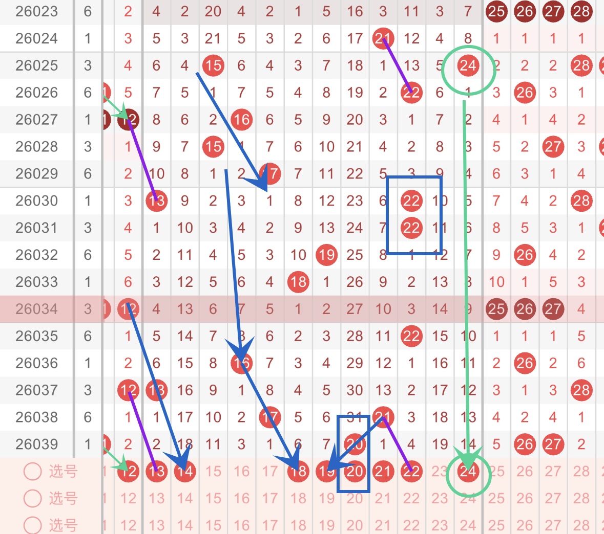 分别是27、33、34。重点考虑33和34。如果断开的是二区,那么凤尾号码应该就从33和34这两个号码中开出来,首选34。