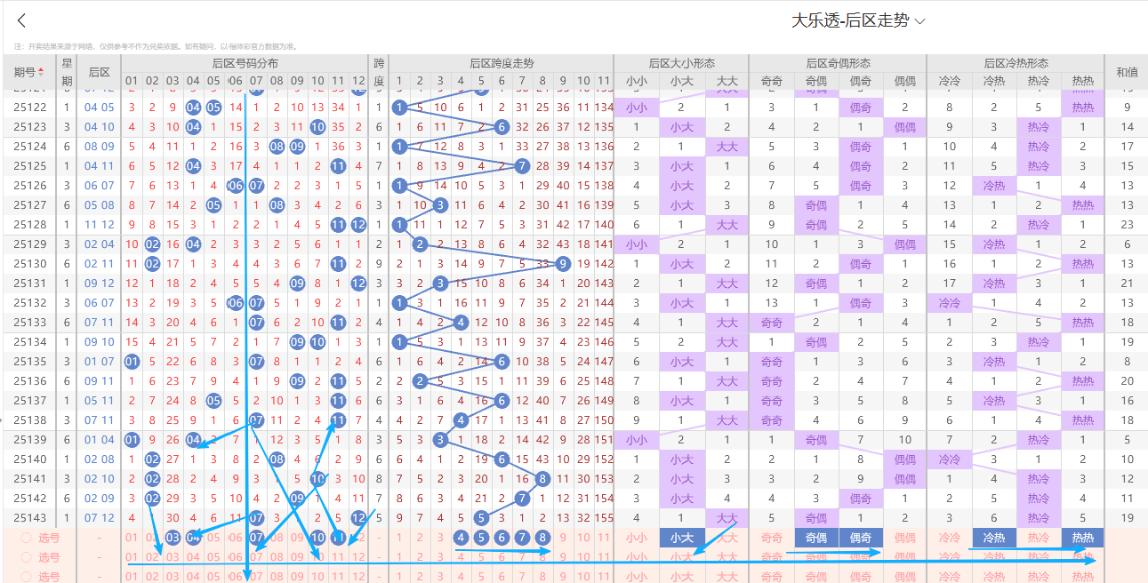 ②区间比:上期212,根据近期区间走势表现本期应关注考虑区间311 032 023。