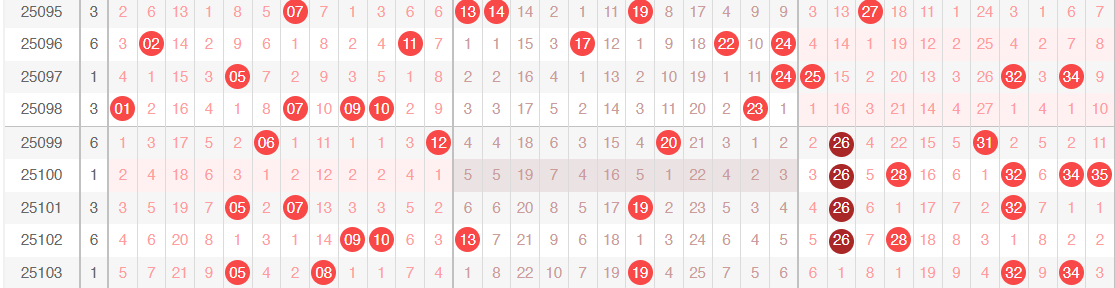104期隔期码09 10 13 26 28本期关注出号0枚