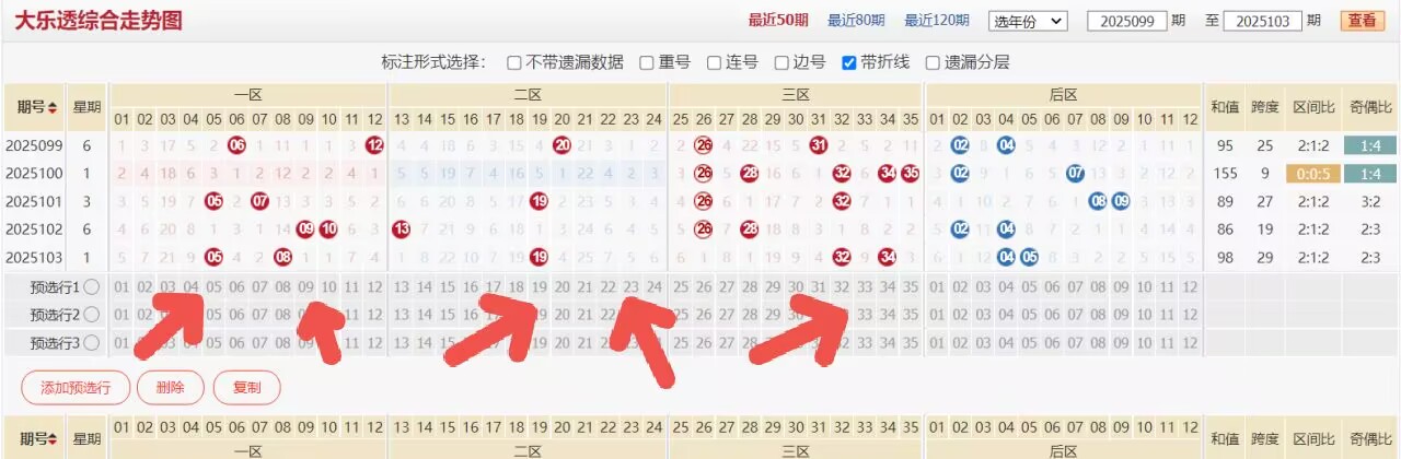 25104期大乐透思路前瞻:关注本期断区回补值,上期4红本期再接再厉