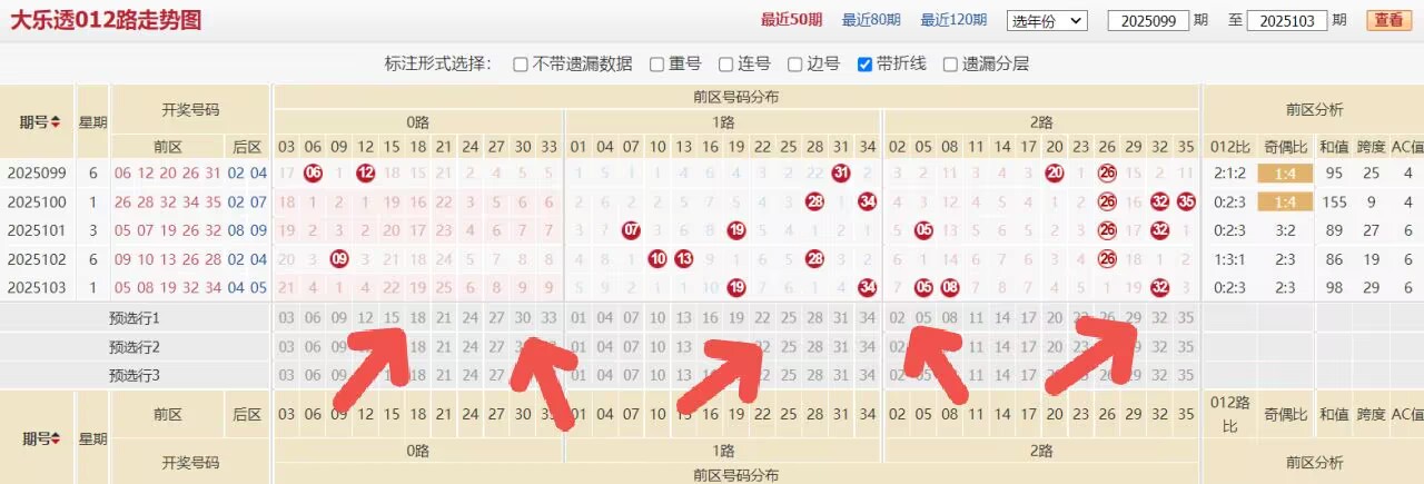 上期大乐透的开奖号码为:05 08 19 32 34+04 05,和值为98,跨度为29,区间比例为2:1:2,奇数偶数比例为2:3,012路比例为0:2:3。上期在整体的热度节奏上与上上期没有任何变化,而且作为大乐透来说居然连续三期区间不变,导致当下二区的热度一直处于一个居低不高的状态。同时对于数值这一块的内容也没有过多变化,我们所针对的就是近期零路数值的内容。本期重点关注路数的调整以及二区热度的回补。这是本机号码的初始基本思路。