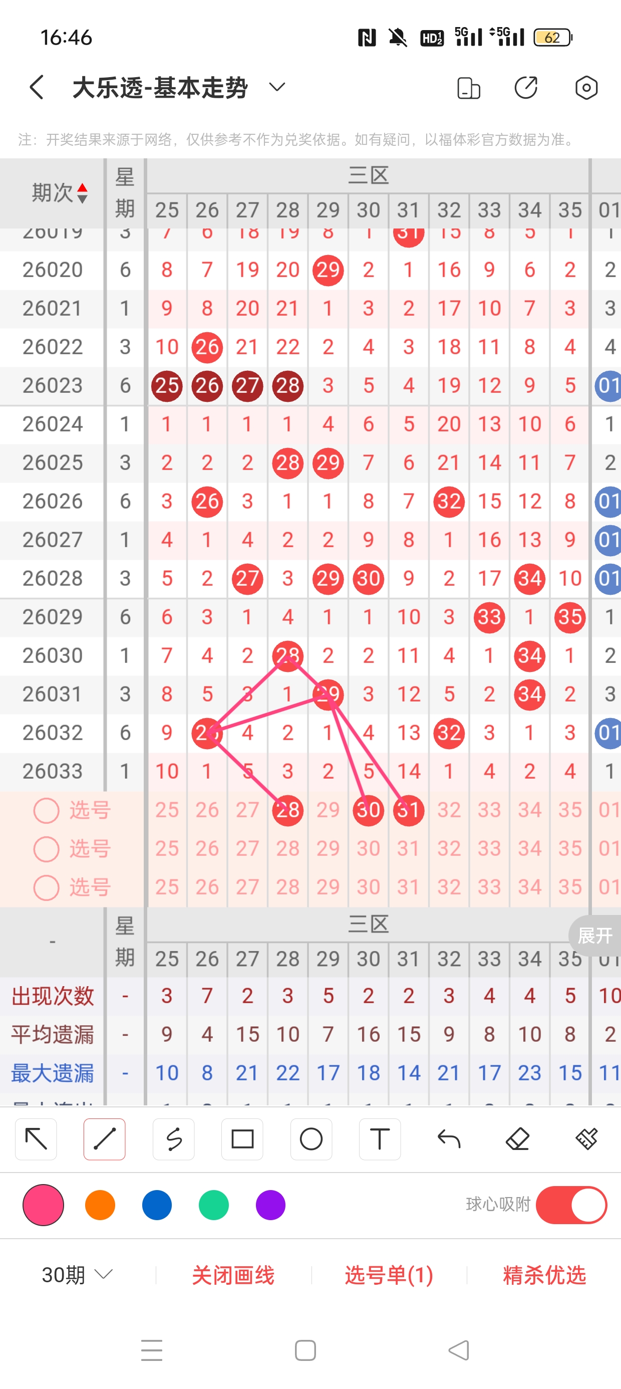 三区(25-35)近37期本区邻孤传13邻25孤1传,孤号热度高,本期着重邻传。近37期本区012路10:9:20,2路热度高,本期着重0/1路。28已遗漏3期,与26之间呈现向右遗漏递减态势,需防。30、31分别遗漏5期、14期,两者与29之间呈现向右遗漏递减态势,需防。
