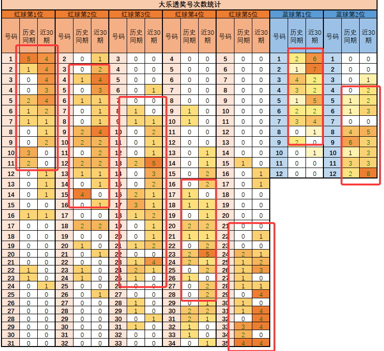 统计历史同期、近30期奖号频率,热门摸底,灵感来源